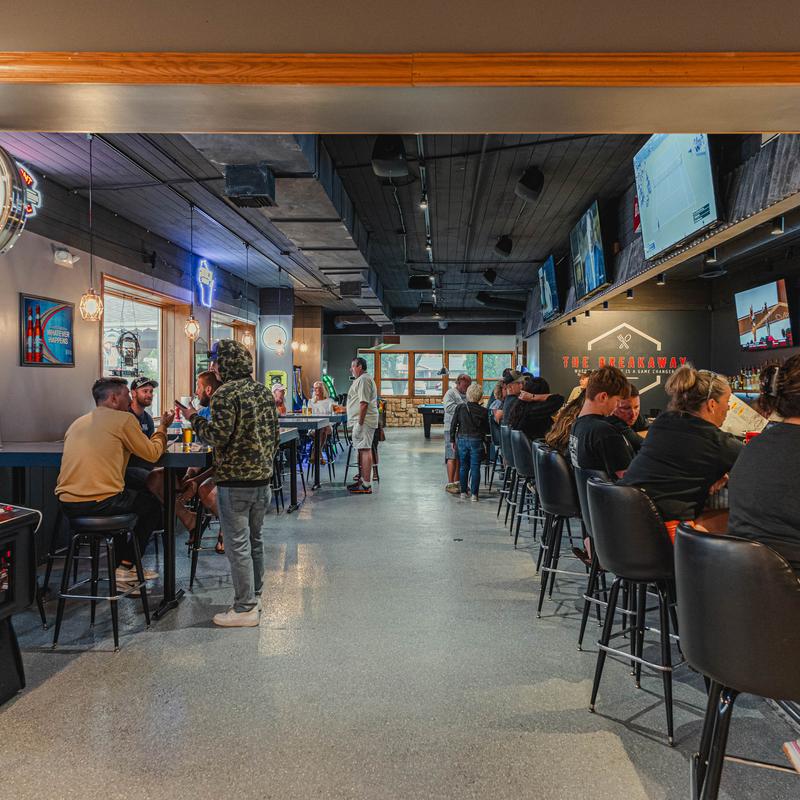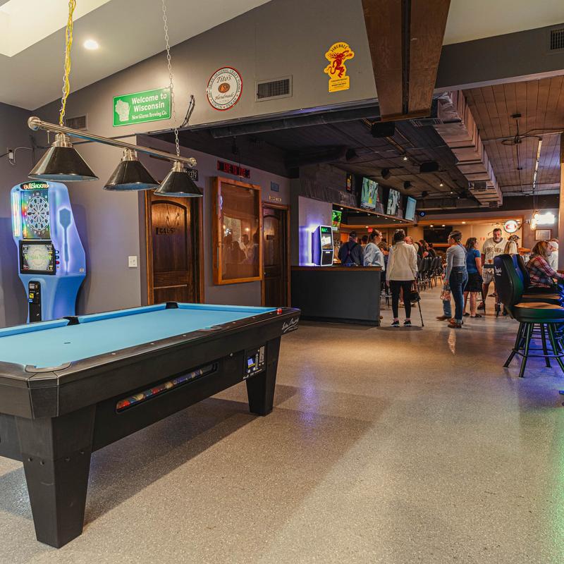 We’re all about big flavors and big moments. From gourmet burgers, giant pretzels, and cheese curds to 12 draft beers on tap, games, pinball, 9 pool tables and darts! This is your spot to eat, drink, and play!